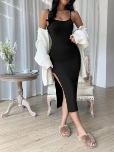 This dress is not only a fashion statement but also a practical wardrobe essential. The combination of a round neck, sleeveless design, bodycon fit, and side slit makes it adaptable for multiple occasions. Its high-quality fabric ensures comfort without compromising on style.