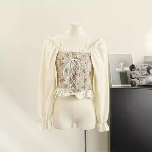 The off shoulder tops by ICW Women are designed to combine retro charm with modern fashion sensibility. This Korean Retro Style Vintage Floral Jacquard Lace-Up Off-The-Shoulder Smock Puff Sleeve Ruffled Crop Blouse Corset Top is a must-have addition to your wardrobe. Made with a perfect blend of cotton and polyester, it provides both comfort and style for casual or party wear.