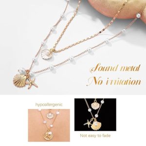 Shop Sannidhi® Pearl Pendant Necklace – 2-piece boho layered seashell & starfish necklace. Elegant, versatile, and perfect for gifts or beachwear.